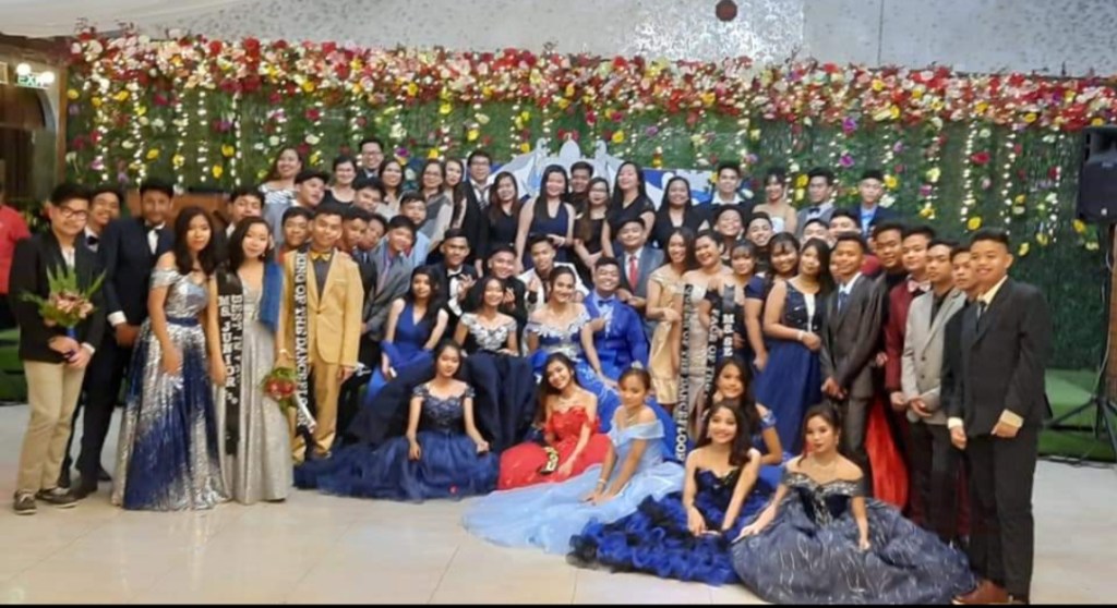 The night has come and everyone is excited especially the grade nine students because it is their first time. The color of the coat and pants I use is blue same as my ribbon and handkerchief. The venue is beautiful and it is totally prepared. The night started and our teachers introduce our personality by partners.